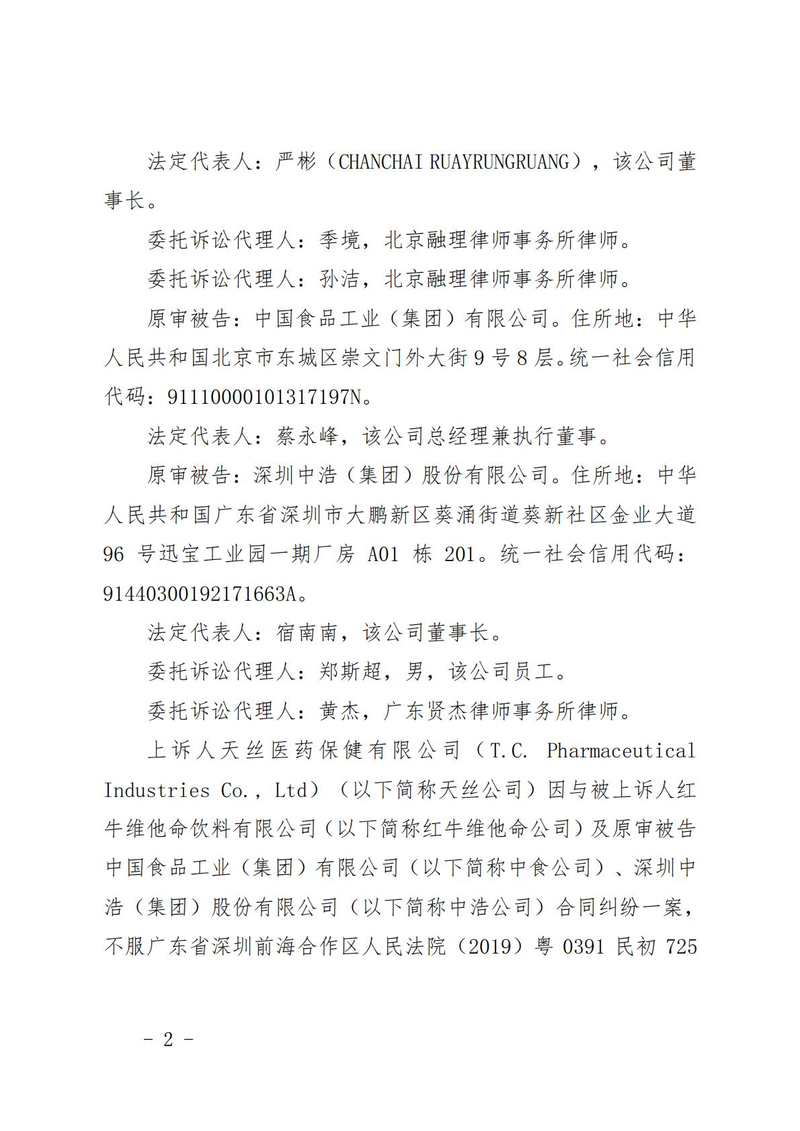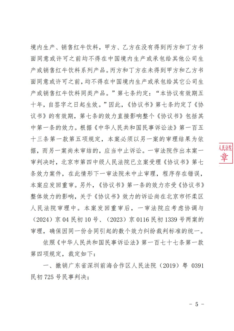 发回重审!深圳中院撤销前海法院关于红牛“50年协议”的判决